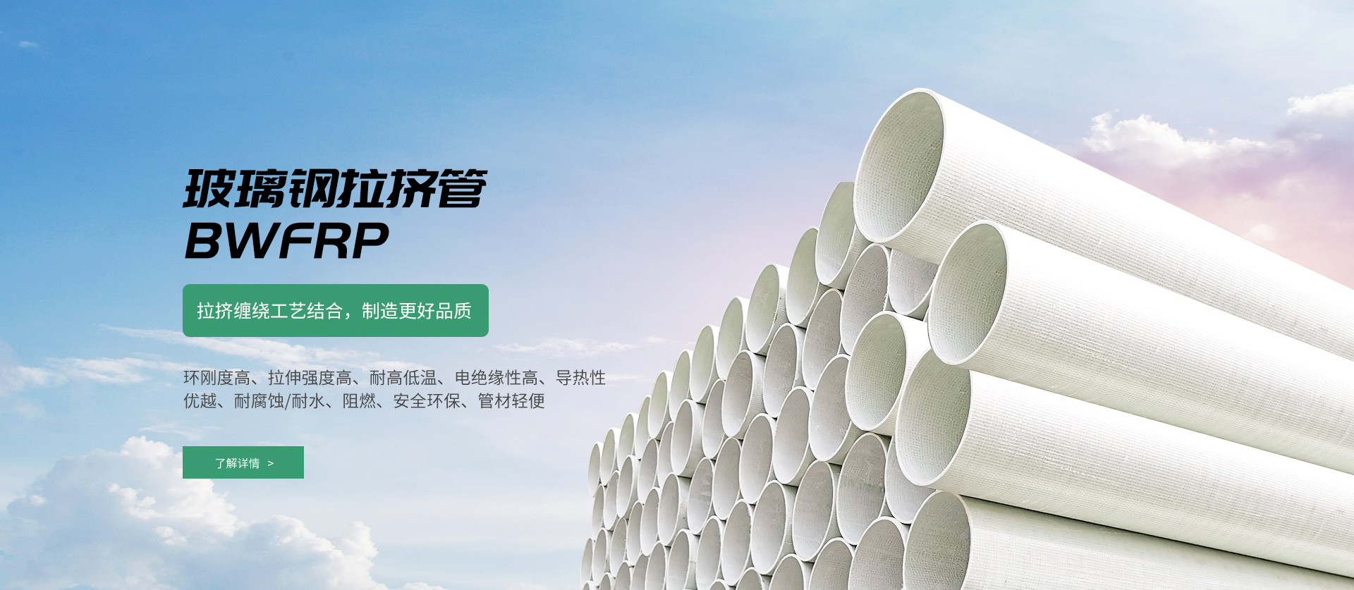 纖維編繞拉擠電纜保護管(BWFRP),是一種新型電纜導(dǎo)管材料。采用高性能纖維復(fù)合材料和環(huán)氧樹脂為原材料,由內(nèi)編繞層、中間層、外編繞層構(gòu)成,通過拉擠工藝成型。這種新型的電纜導(dǎo)管產(chǎn)品具有傳統(tǒng)管材無法比擬的優(yōu)點,是取代傳統(tǒng)玻璃鋼管的一種結(jié)構(gòu)與性能俱佳的產(chǎn)品,適用于電力電纜及通信電纜的保護套管使用。